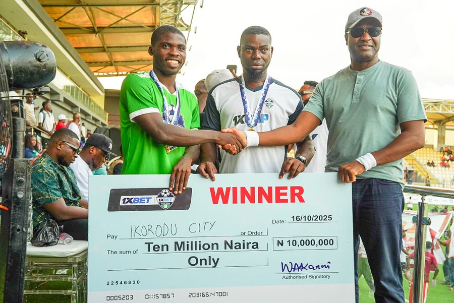 That strike sealed the win as Ikorodu City FA held firm to lift the 1XCup 2025 trophy, walking away with the grand prize of Ten Million Naira, while ISAGT FC settled for Five Million Naira as runners-up.